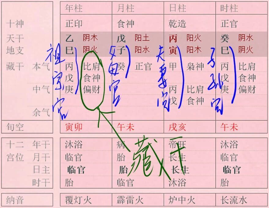 地支藏干,就如同住在各自 “房子” 里的人。若宫位中住的是对应六亲(如父母宫住 “父母”),则为 “住得其所”,关系安稳;若所住非对应六亲,便可能出现 “争宫”“夺宫” 的问题,这将在后续进阶文章中详细探讨。